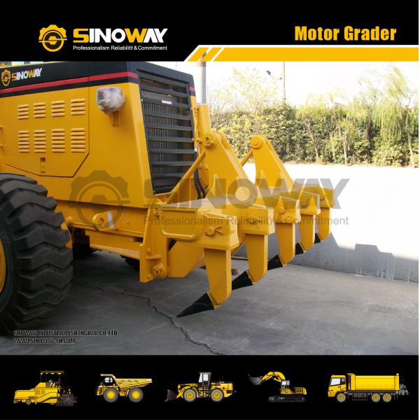 With the heritage of high reliability, Sinoway motor grader range covers from 130HP mini road grader up to 315HP mining motor grader. Word class power train components as well as hydraulics are included, thus to ensure Sinoway graders as a very best choice for your applications of soil foundation works, mine construction, road maintenance and repair, provincial and township roads construction, etc. Various attachments like front and rear ripper, front blade and automatic leveling device, are available for extending.